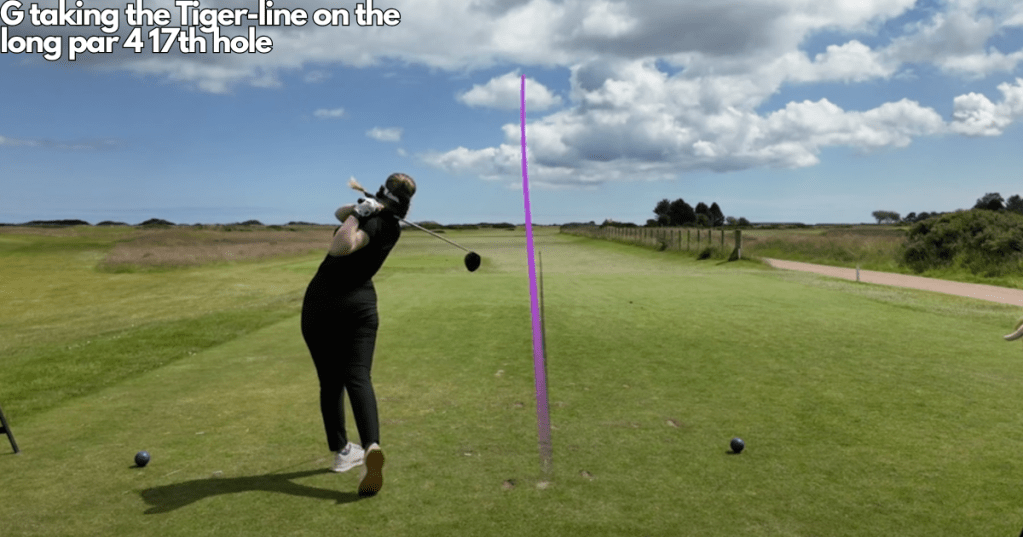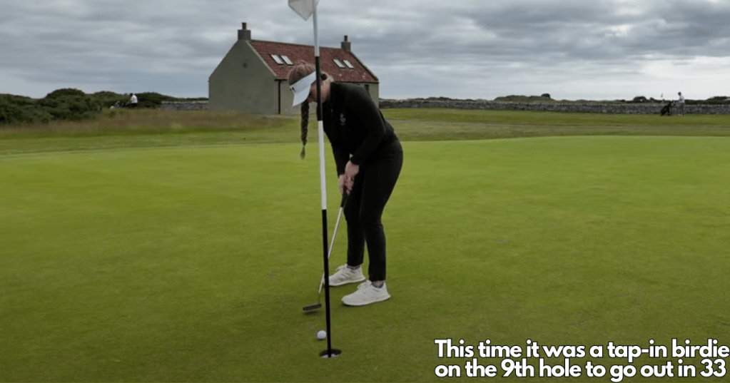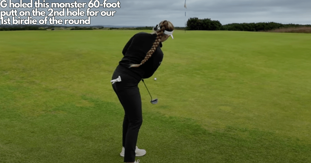 We began our 2nd round just after 9am with a couple of solid tee-shots down the right-hand side of the 1sthole. A fantastic 2-putt par up and over the large false front from short of green meant we moved to the 2ndhole with a pep in our step. The 2nd hole follows, which is one of the longest on the course. It usually plays as a par 5 for the women and a long par 4 for the men. G hit a solid drive and Cam followed with a good approach that just trickled off the left side of the green. G was left with a 50 foot putt from the fringe which she left just hanging on the edge of the hole. As we walked up to the ball, it finally dropped for our best birdie of the day so far.