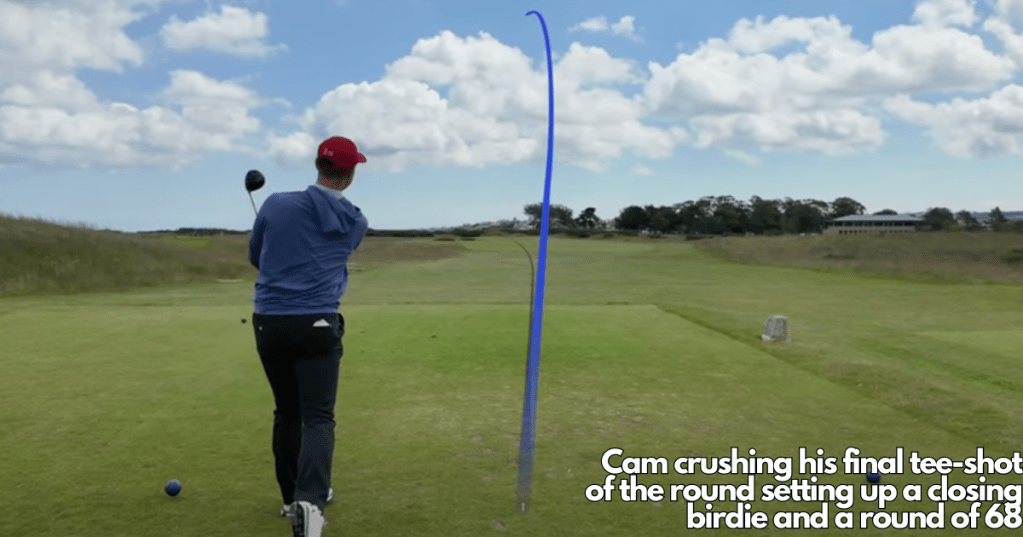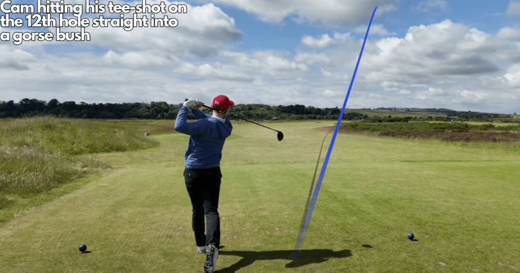 On the long par 3 10th hole, G found the putting surface from just under 200 yards and Cam just slightly over read the putt for birdie. Another excellent long putt from just short of the 11th green meant another simple par. The 12th is a short 310-yard par 4 that plays as a slight dogleg right. Cam quickly found the gorse that covers the right side, while G was a little safer down the left. A poor approach shot meant we really did have to work a bit harder on this one to make our 3rd consecutive par. On the 13th and 14th, routine pars followed. These were both tough par 4s to navigate and par is a good score.