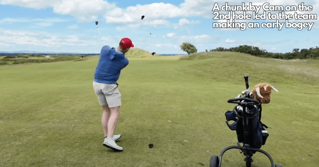 A couple of early bogeys at the 2nd and 5th had us sitting at 2 over par for our 3rd round. We then found a nice rhythm for the remainder of the front-9. This culminated in a lovely birdie on the par-3 9th hole as G converted a 20-foot putt after Cam hit a lovely 6 iron into the green. After a solid par on the 10th, a couple of wayward tee-shots into the thick rough on the par 5 11th hole led to a bogey 6. The rough was incredibly thick and we did well to avoid it for much of this round. A quick recovery on the 12th hole, with a birdie 4, took us back to +1 for the round. On the notoriously difficult closing stretch, we would do well to hold on to this score. A single bogey on the 17th and 5 pars from our last 6 holes, saw us finish at 74 (+2).