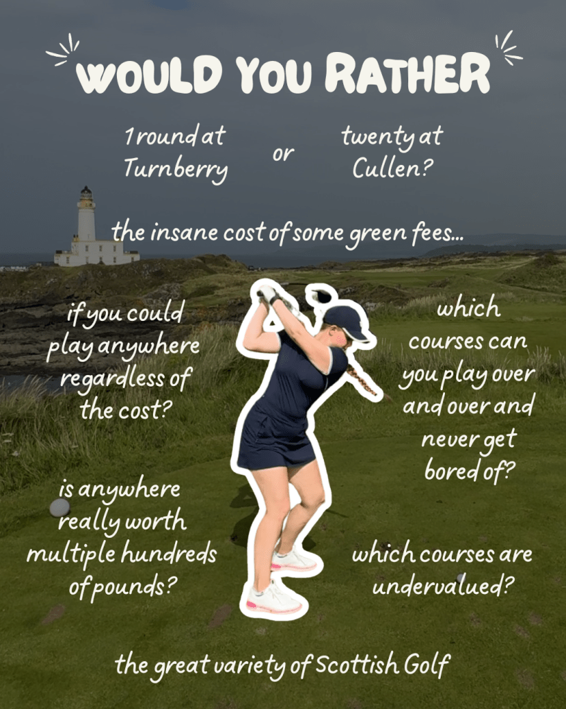 Ep27 | A round at Turnberry or twenty at Cullen? The cost of Scottish Golf 💰 If money was no option, where would we choose to play in Scotland? Is there really over £1,950 difference between a round at Turnberry and a round at your local municipal? With some green fees coming in at far over one club’s annual membership, we discuss which golfing experiences are over (and under!) valued in Scotland 👀 Listen here 🎧